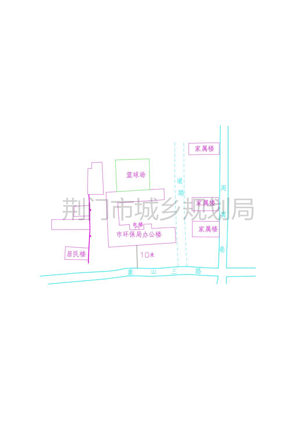 荆门市环境保护局申报的环保监测站加装电梯方案位于象山三路市环保局院内,因工作需要拟在市环保局办公楼北墙外加装七层电梯一部。