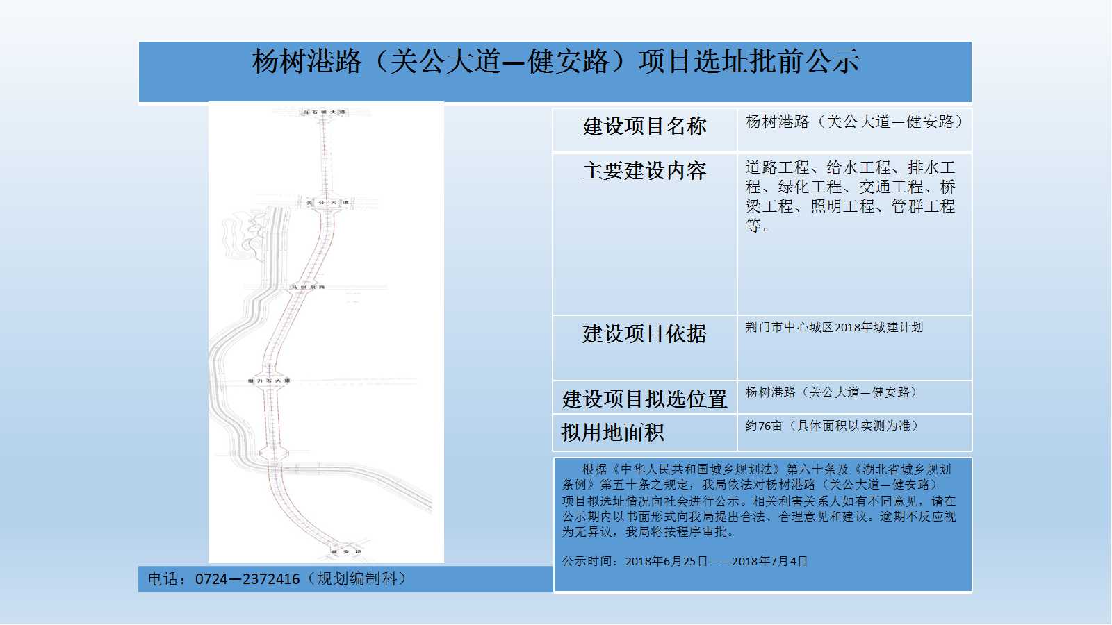 杨树港路(关公大道-健安路)项目选址批前公示